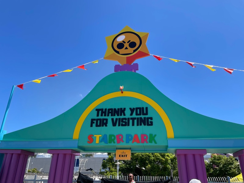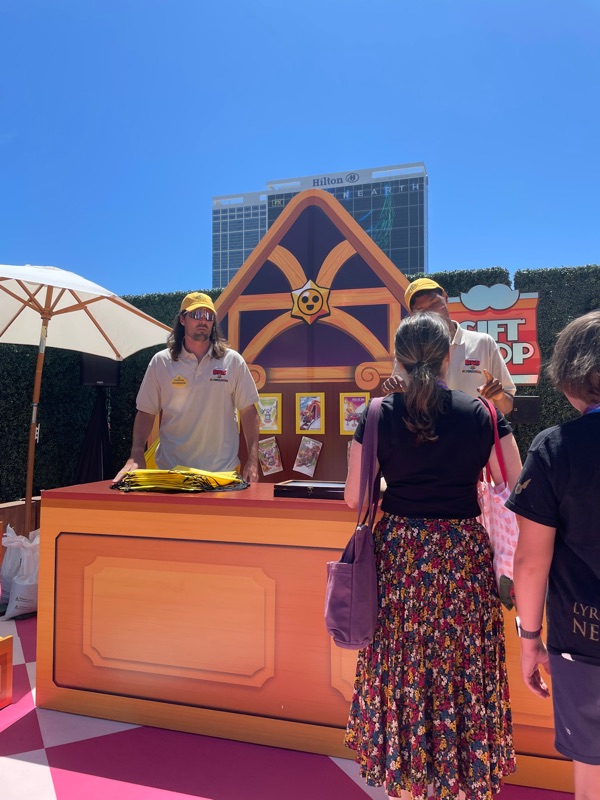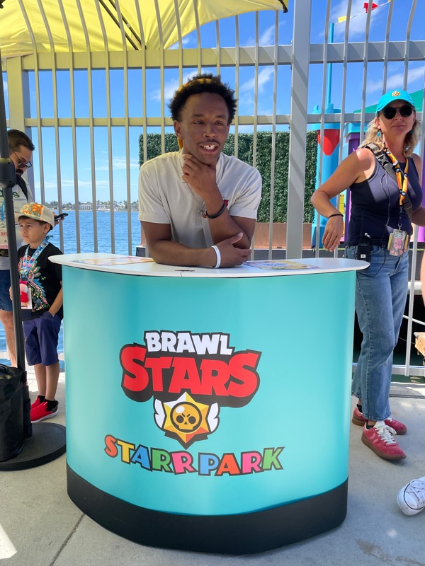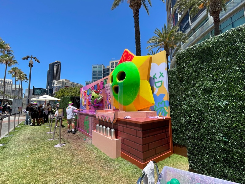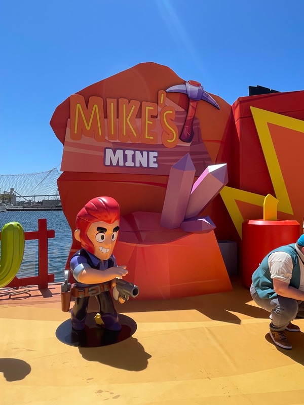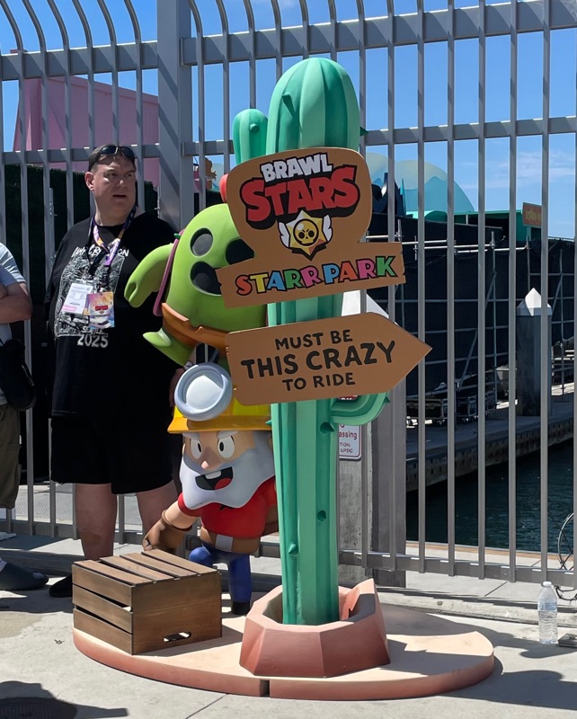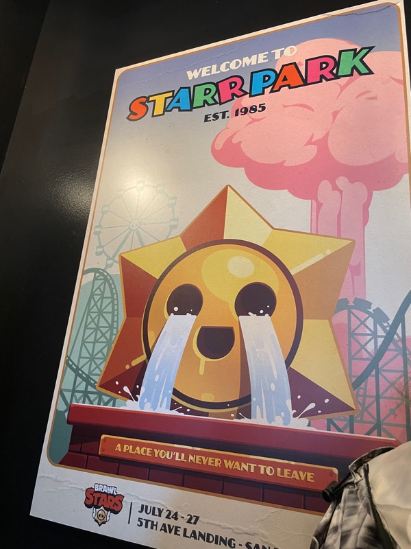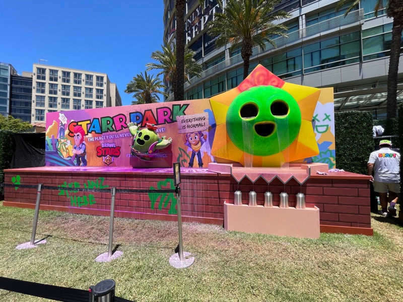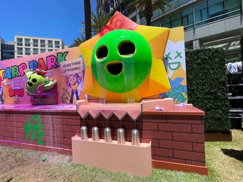 Supercell’s Brawl Stars showed out this year with their Starr Park Activation, Fountain of Tears as well as a street team with Spike the Cactus for photo ops and handing out Limited Edition Starr Park Mr. Beast Feastables chocolate candy bars. One of the most fun activations this year. The Starr Park employees at Starr Park were very in character and very engaging. While you wait for your group to board you are given a lanyard and badge holder along with a card to clip to your lanyard which is later used to collect star stickers if you are able to win the games inside Starr Park. Then you meet more Starr Park employees and finally you board the Starr Rail to Starr Park but not without some hiccups along the way thanks to Spike.