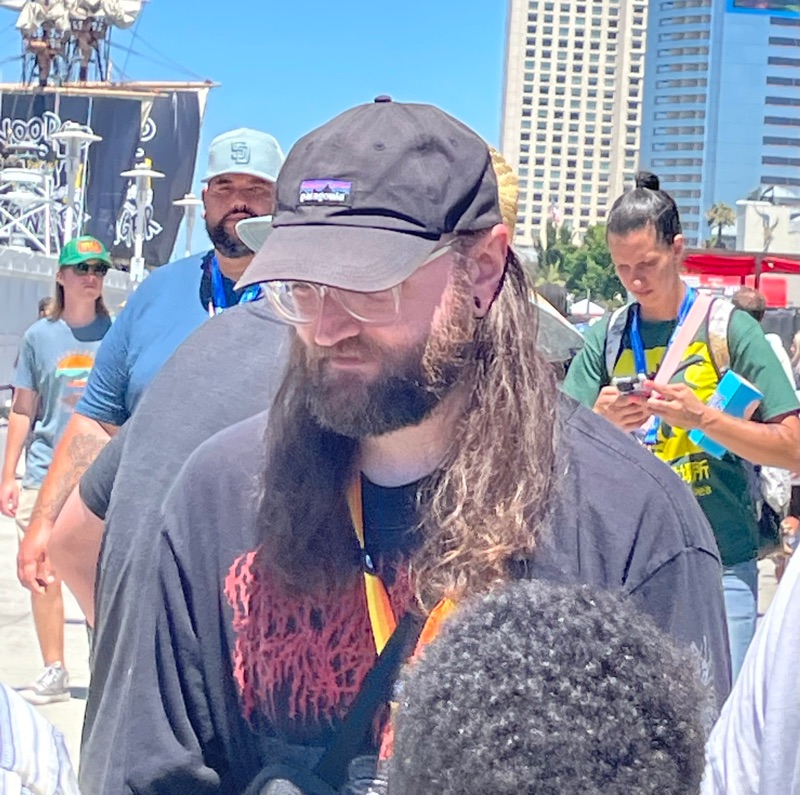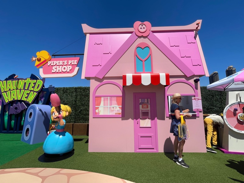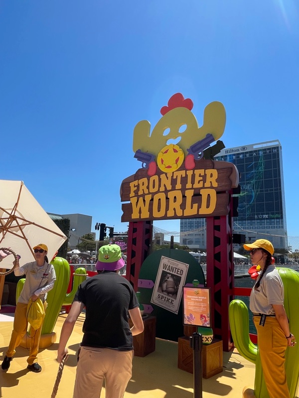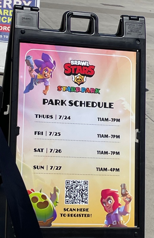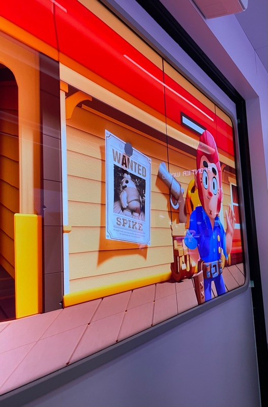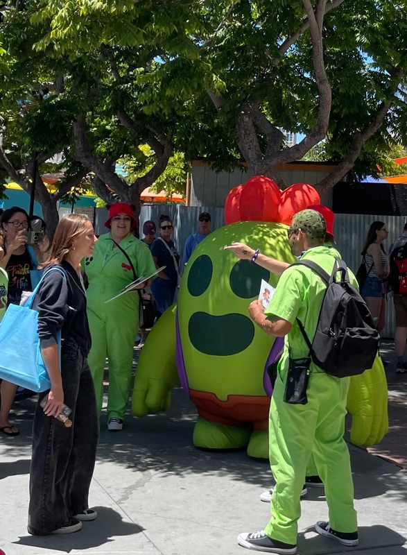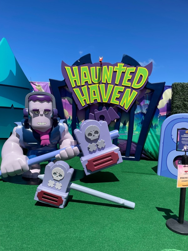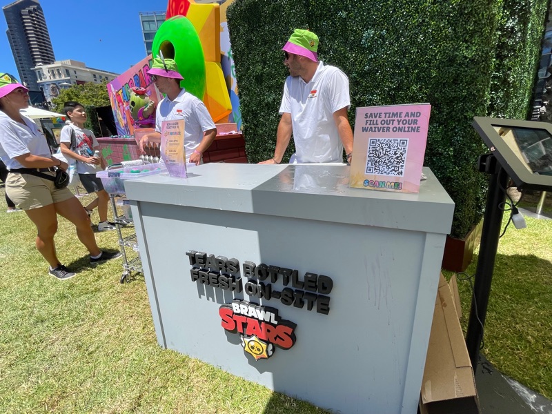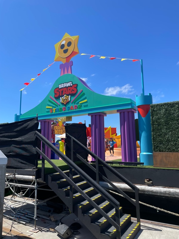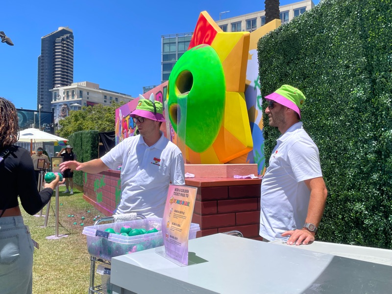 Supercell’s Brawl Stars showed out this year with their Starr Park Activation, Fountain of Tears as well as a street team with Spike the Cactus for photo ops and handing out Limited Edition Starr Park Mr. Beast Feastables chocolate candy bars. One of the most fun activations this year. The Starr Park employees at Starr Park were very in character and very engaging. While you wait for your group to board you are given a lanyard and badge holder along with a card to clip to your lanyard which is later used to collect star stickers if you are able to win the games inside Starr Park. Then you meet more Starr Park employees and finally you board the Starr Rail to Starr Park but not without some hiccups along the way thanks to Spike.
