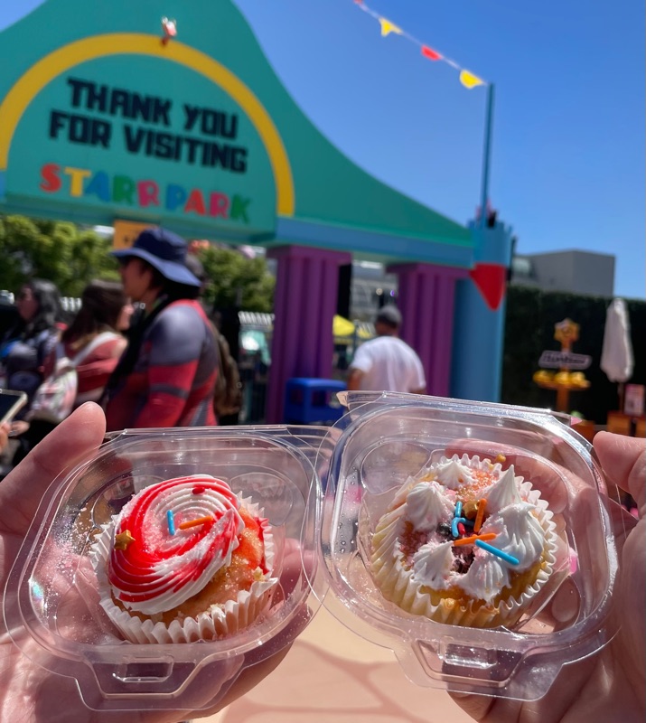 | Before you leave Starr Park, you get a swag bag that had a keychain, gem, stickers, digital code etc... The candy bar was given out when waiting in line to spin the wheel at Piper's Pie Shop. If you landed on the cupcake you chose you got Star Sticker but if you didnt that's ok because everyone got a cupcake. They had street teams handing out the candy bars in front of Starr Park pretty much every day. |