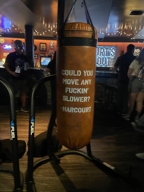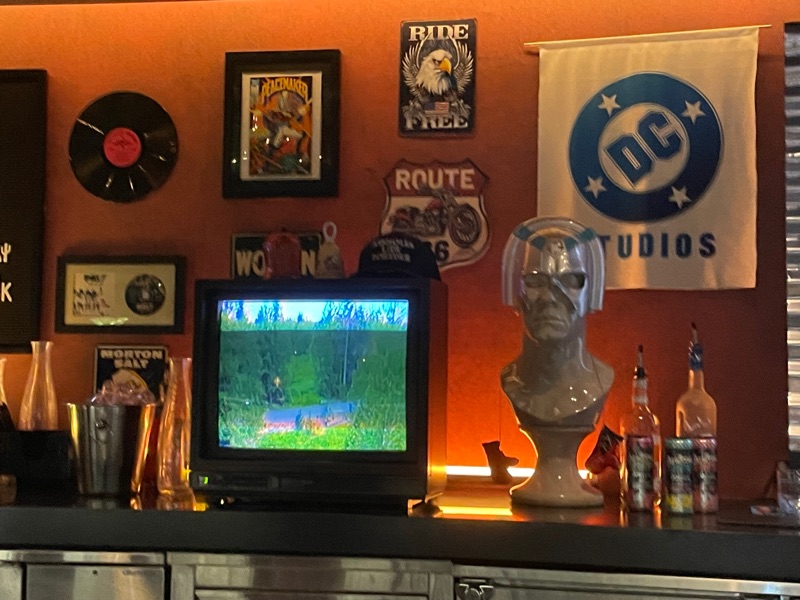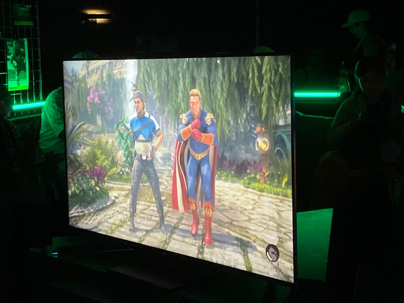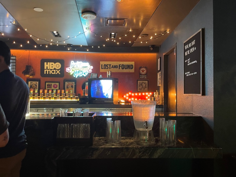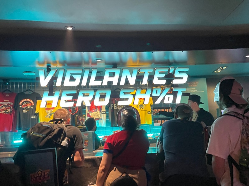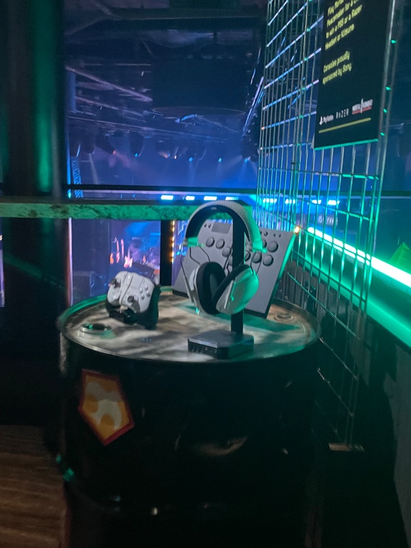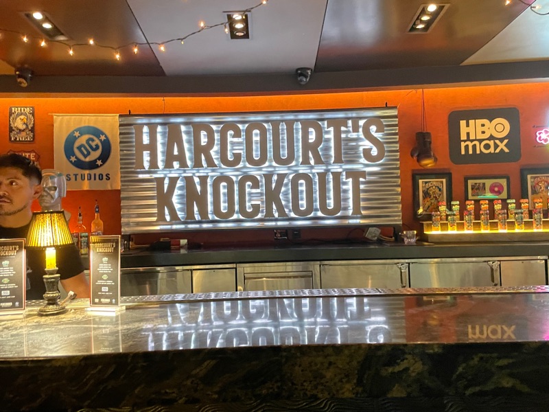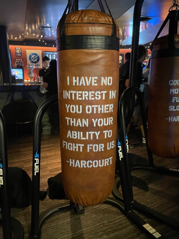 The reservation system for this offsite before comic con didn't go very well as the website kept crashing but we can overlook that because the pain and suffering of wasting a day trying to get a reservation paid off big time. Once we arrived for our time slot, we were given a Peacefest bandana and a Peacemaker mask. We had unlimited drinks and got to see some of the Peacemaker props from the show as well as purchase exclusive Peacemaker merch. Upstairs was the bar and an area to play video games featuring none other than Peacemaker himself battling it out with anyone else from other shows or games. We got treated to a concert featuring a live band playing 80's Hair Metal music such as Guns 'n Roses' "Welcome to the Jungle", Def Leppard's "Pour Some Sugar On Me" to Bon Jovi's "Livin' on a Prayer". The live concert lasted about 20 minutes with the whole experience lasting over 30+ minutes.