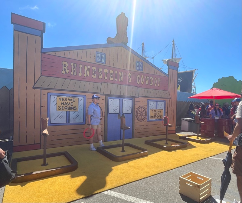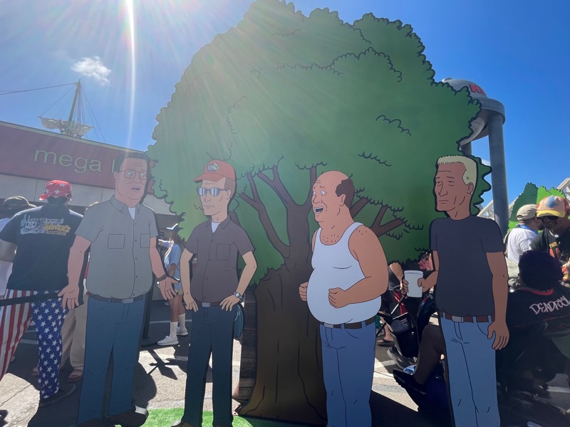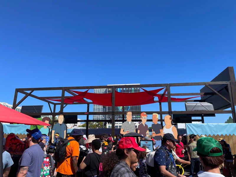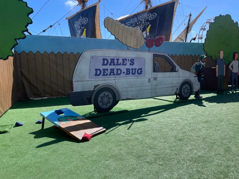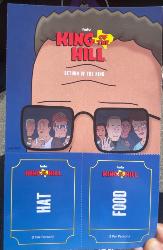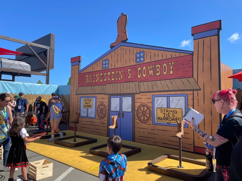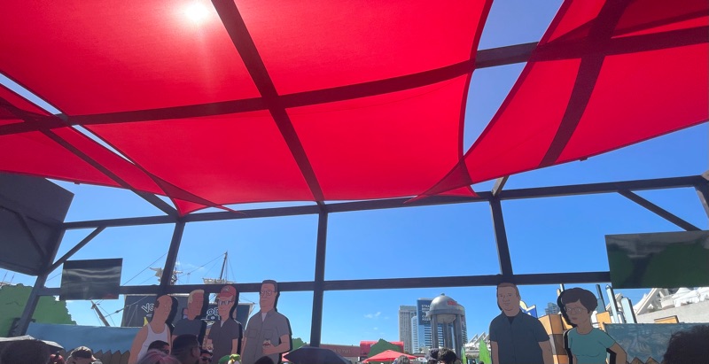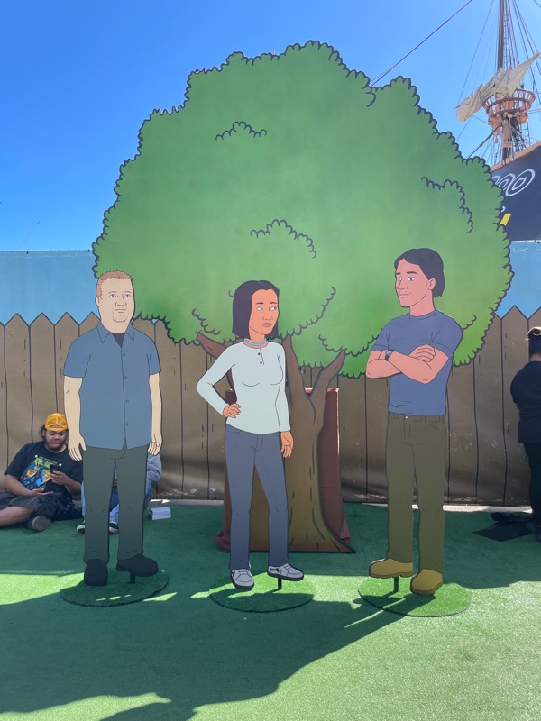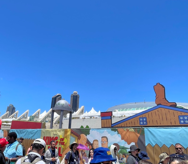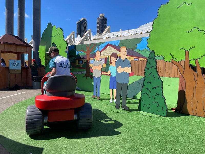Hulu’s King of the Hill offsite activation during SDCC was a really fun and unique experience. Once you get through the line you are given a King of the Hill card that tells you what activities there are inside Arlen, Texas as well as tickets for a trucker hat and bbq food. There were various photo ops as well as several games to win prizes such as a can koozie, pin sets etc.... Pick up your trucker hat at Mega Lo Mart, food at the Hill House Backyard BBQ and stop at the Water Tower to pick up your can of Alamo water.