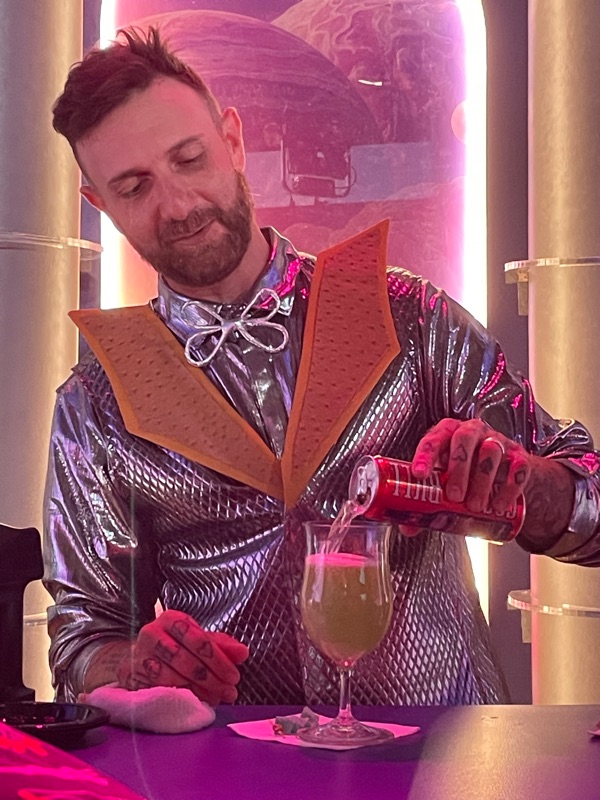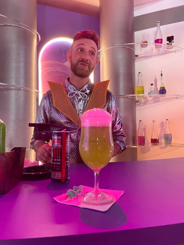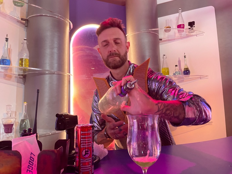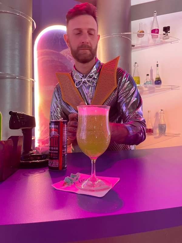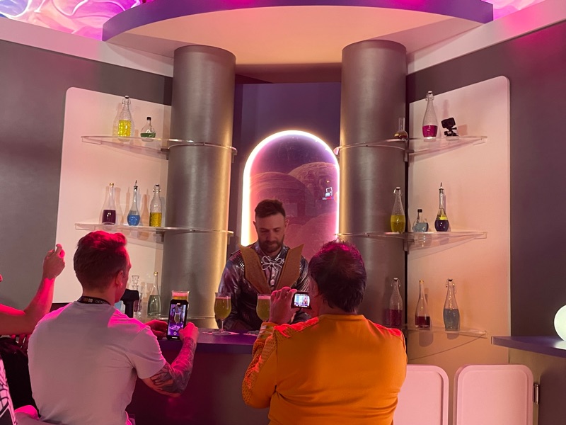 Star Trek was the longest line to get through and took so much time that you needed to come back multiple times to experience the rest of the activations inside. They were giving out tote bags but not very many per time slot. It took a long time because they had a bar serving an Orion Hurricane drink. The bar accommodated 3 people at a time. The bartender was awesome though. The drink itself looked cool but didn't taste very well. Most likely it was because it was not cold or had ice in it. It was room temperature. After the bar, there was a photo op. We were given an option to skip the bar and just do the photo op if we did not want to wait in line. Was it worth it? Not for the wait it wasn't. They probably could've filtered in more people if they had mixed the drinks for the 3 people to sit but then served smaller sample cups to everyone else so the wait didn't take so long. The wait ate up so much time that you're left with very little time so you had to really choose and pick what to do next.