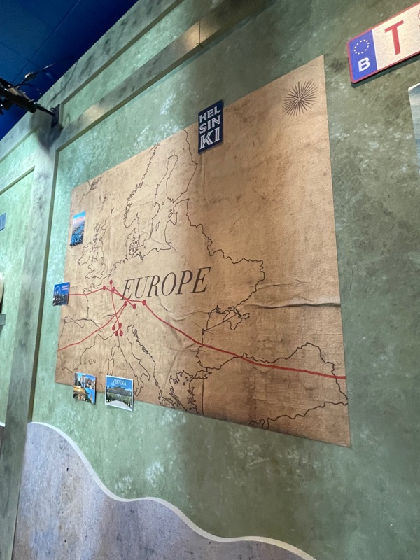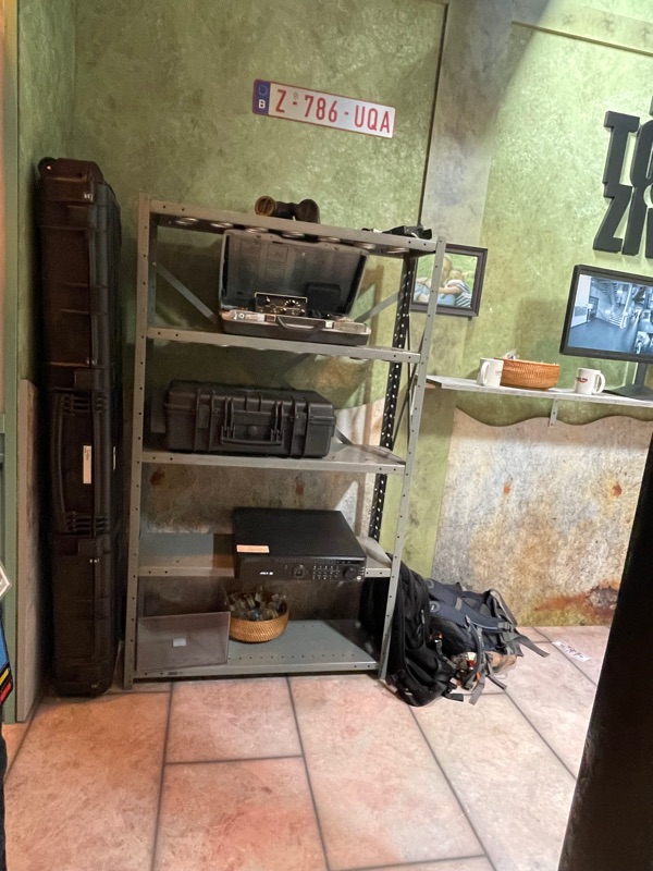 Outside it looked like a nice little Parisian Cafe but once you stepped inside it was a stripped down safehouse which included surveillance equipment, photos and more. There was a photo and video op inside next to a safe that had money and passports. It was a fun and unique experience. Pics below:
