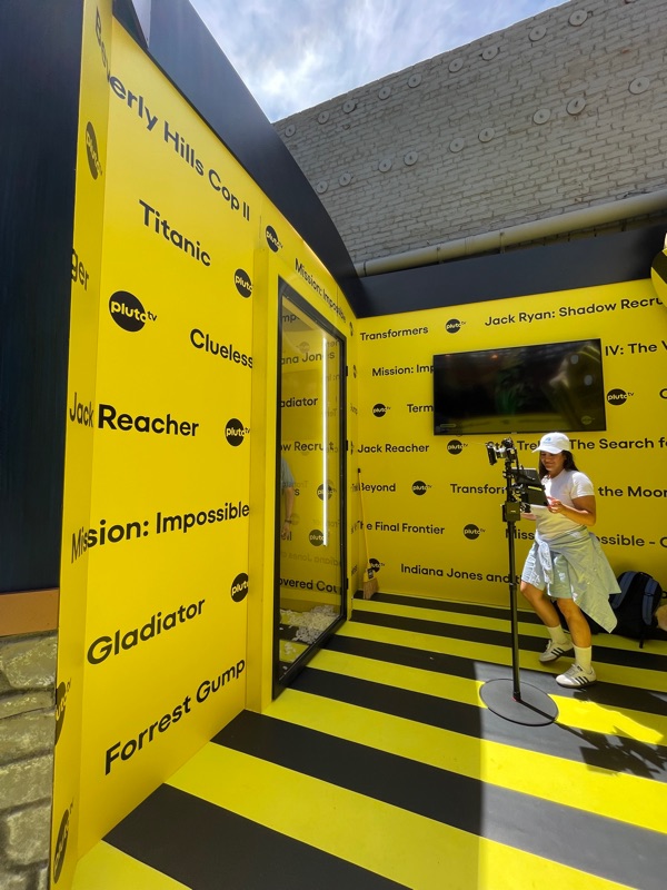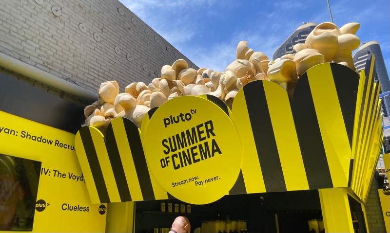 Pluto TV had a photo op with popcorn (foam) flying around and they gave out boxes of popcorn and slushies.