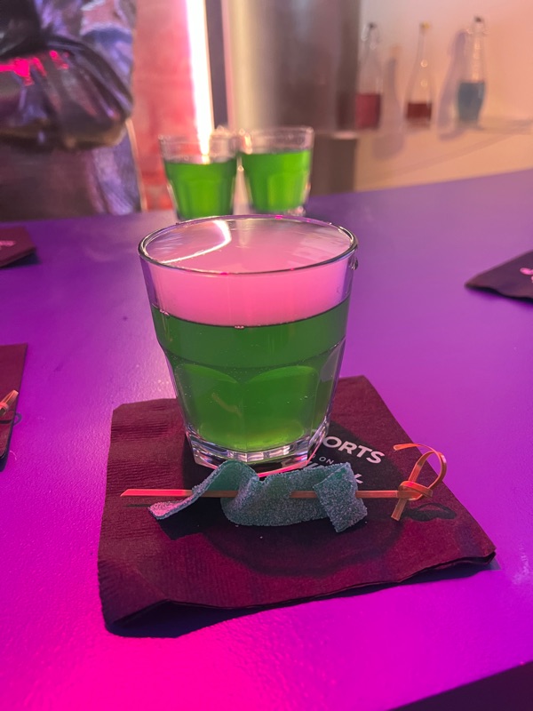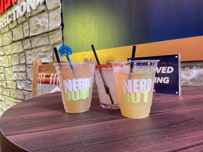 They offered mini burgers, mini chicken sandwiches, french fries (forgot to take a pic) as well as The Champions Club drink from the Sports bar as well as the drinks from the Landman bar with the collectibles mugs (also forgot to take pics). The Nerd Out drink was a bonus drink that if we said the magic phrase we got that drink on top of the other 2 drinks. This drink did not require us to use a drink tab. The best drink was The Nerd Out drink. You'll see another pic of the Star Trek drink below. The only thing good about it was the color and the candy it came with. Last pic was all the swag we got when we went. Didn't get everything but we tried.