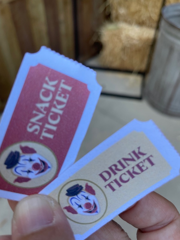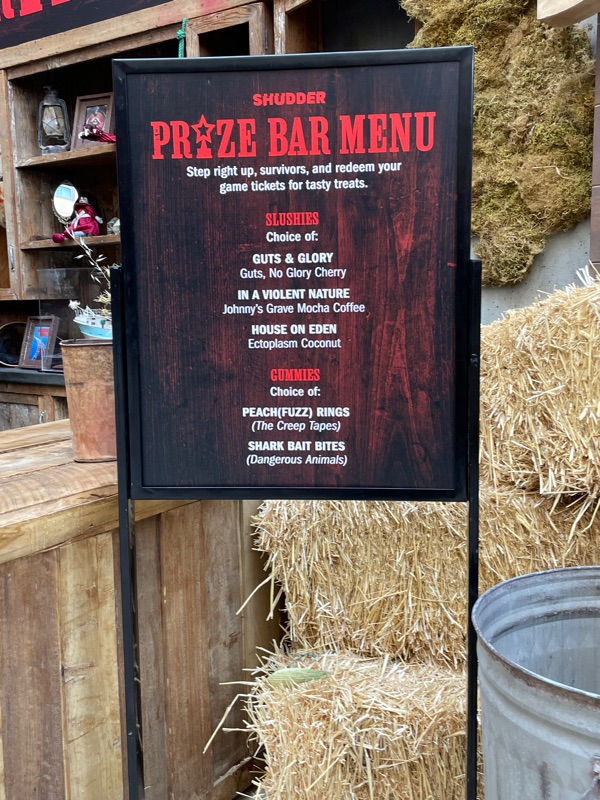 Once we exited, survivors entered a twisted carnival type area that had areas for photo ops, carnival games, and was given tickets for food (gummies) and drink (slushies). On our way out, we were given a swag bag (popcorn, bag, poster) before our experience ended. Check out our pictures from this experience below:
