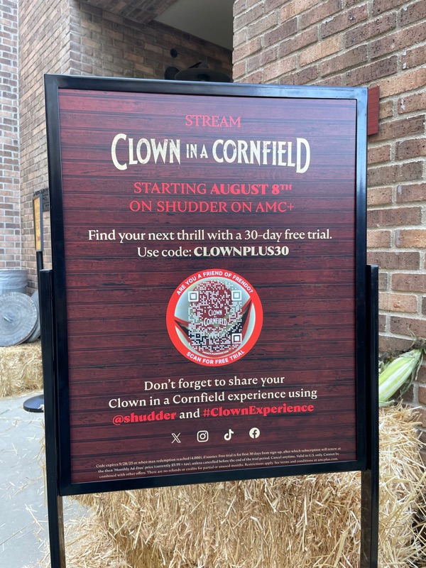 Shudder’s Clown in a Cornfield experience was one of the best immersive offsites during comic con this year. If you enjoy going to Halloween Horror Nights or similar Halloween mazes this one did not disappoint.