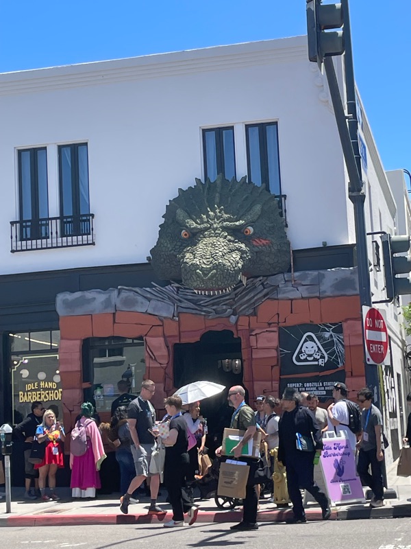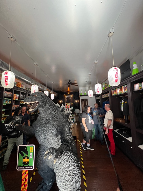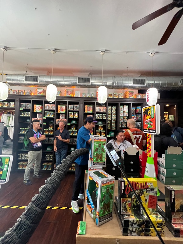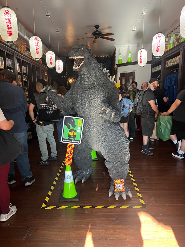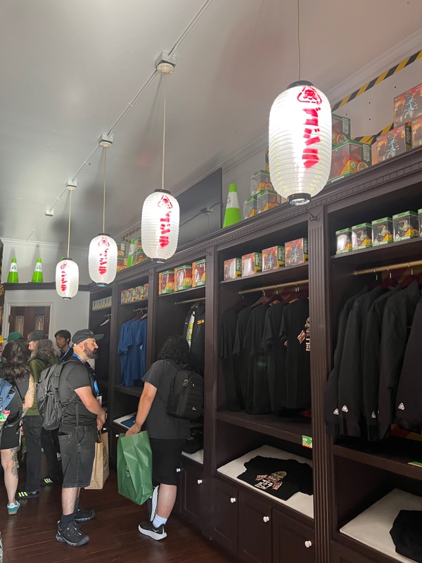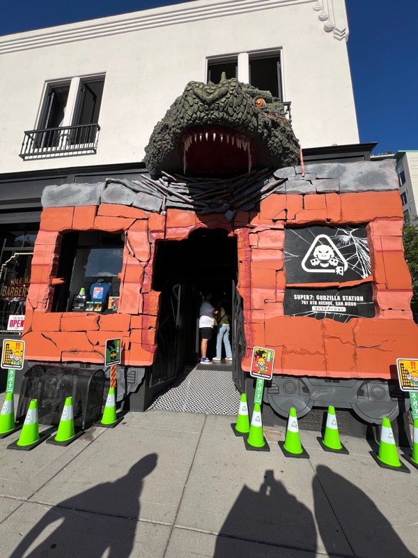 Super7 always has one of the most creative offsites / pop-ups during SDCC. This year they transformed their San Diego store location into the Godzilla Station. They put up a temporary facade featuring Godzilla attacking the train station and always dope artwork on the side of their store. Inside the pop-up featured exclusive Toho Godzilla merchandise. There were exclusive apparel and collectibles. They had a signing with Director Shinji Higuchi. There were lines every day they were opened for SDCC. By Saturday, the store looked pretty empty. One of the sought after items is the Godzilla Station coin which you could pick up at their booth inside the convention center or at their pop-up. See pics below of their pop-up.