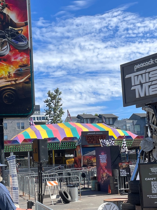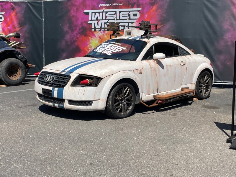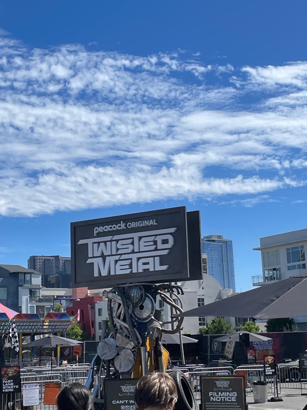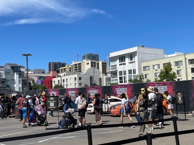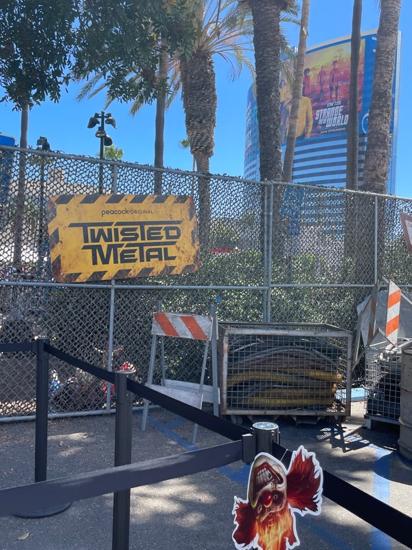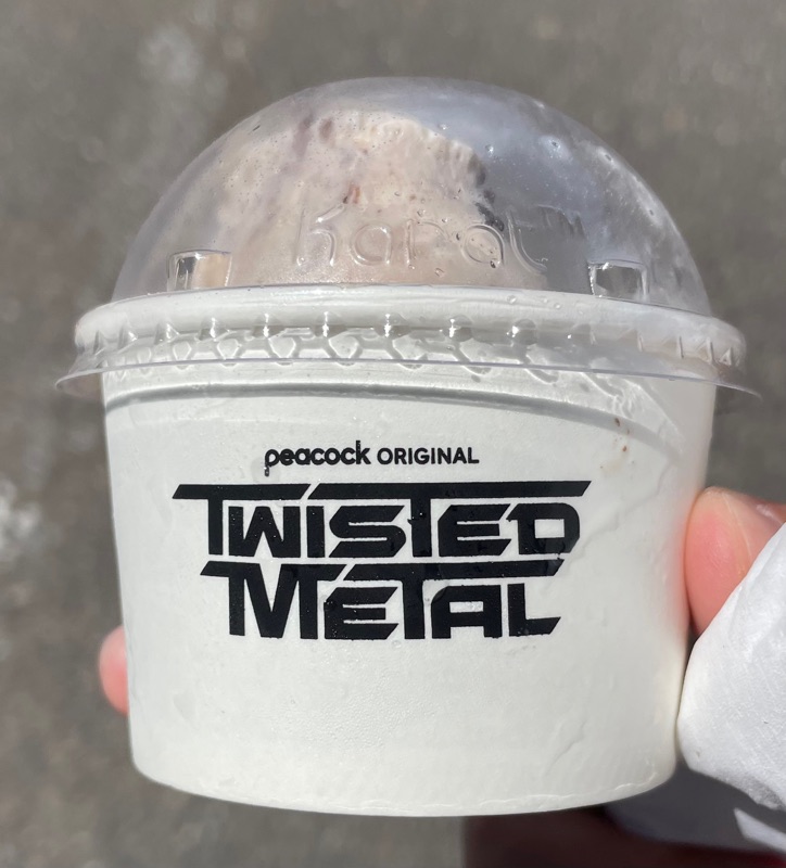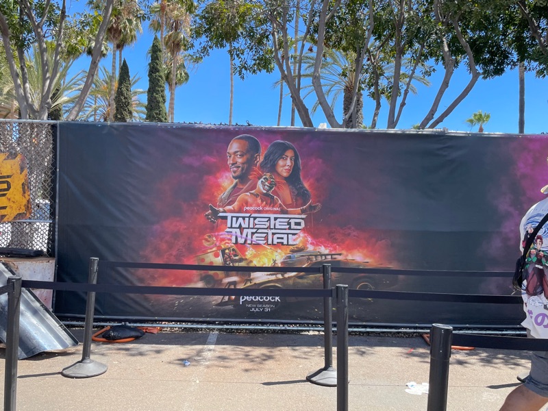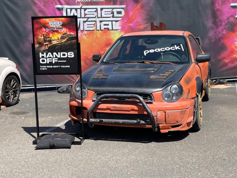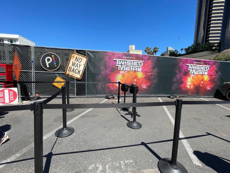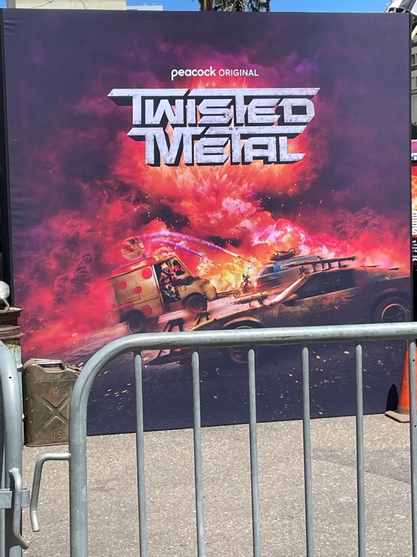 We checked out the Twisted Metal Bumper Battle Activation during SDCC. You had to be 18+ to participate in the Bumper Battle and also had to sign a waiver. The standby line moved fairly quickly. Once you get inside there were photo ops featuring some of the cars and vehicles from the show as well as the Twisted Metal ice cream truck which meant free ice cream. They also handed out free masks and posters. Check out the pictures below: