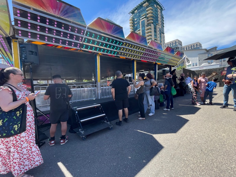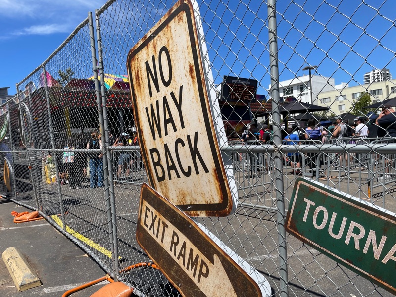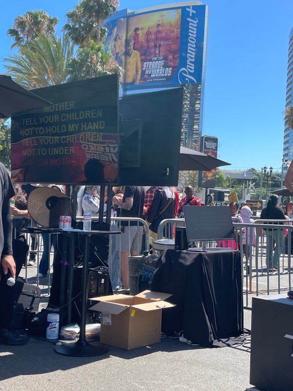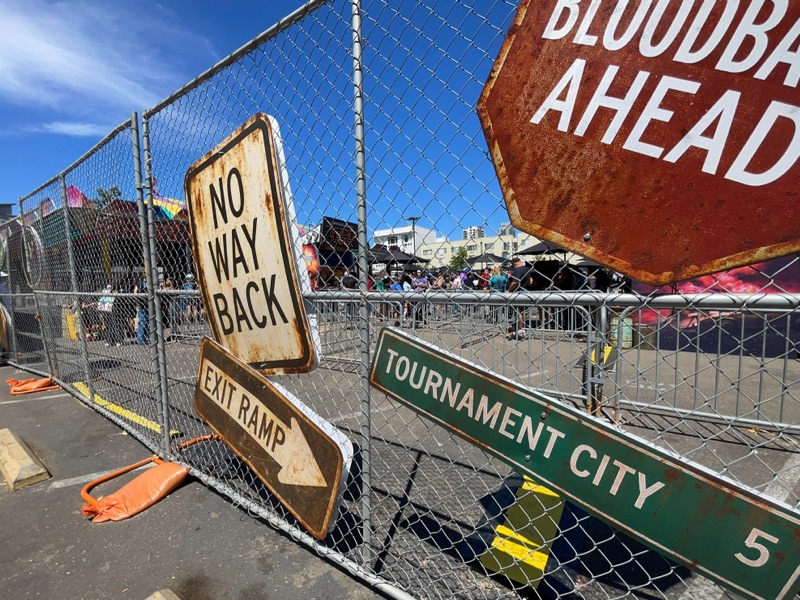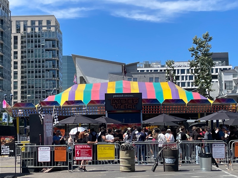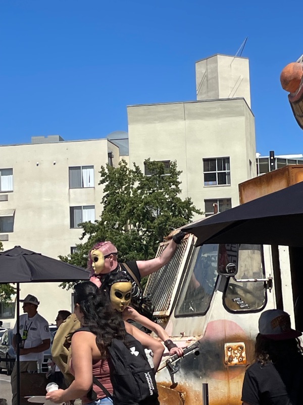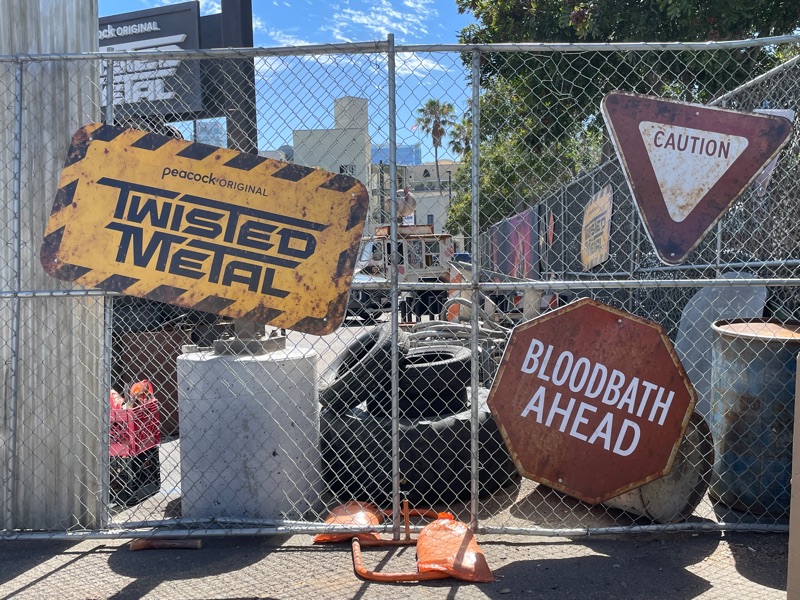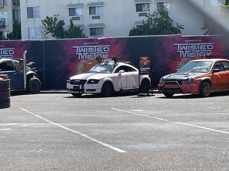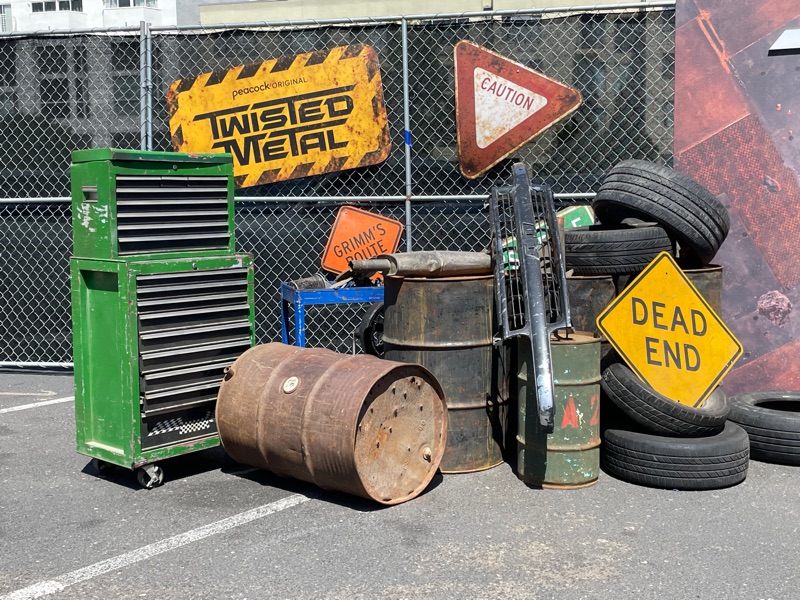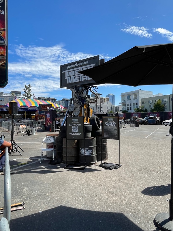 We checked out the Twisted Metal Bumper Battle Activation during SDCC. You had to be 18+ to participate in the Bumper Battle and also had to sign a waiver. The standby line moved fairly quickly. Once you get inside there were photo ops featuring some of the cars and vehicles from the show as well as the Twisted Metal ice cream truck which meant free ice cream. They also handed out free masks and posters. Check out the pictures below: